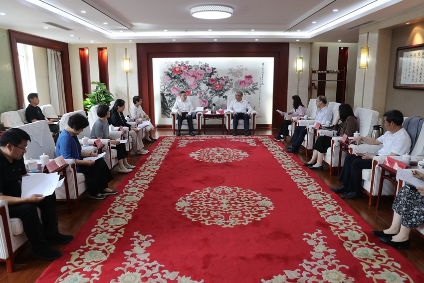 5月26日下午,民进中央常务副主席朱永新在民进中央机关会见民进湖北省委会主委胡仲军一行,并召开座谈会。