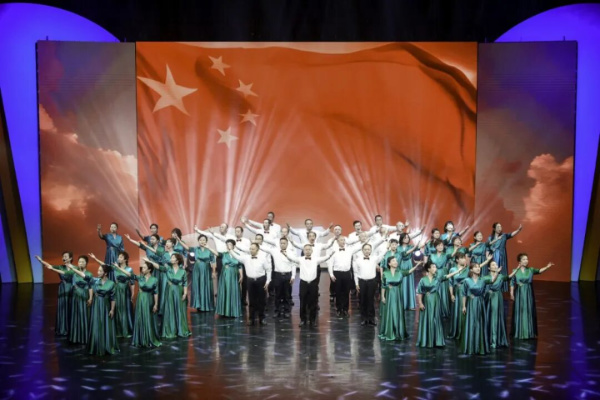 《万水朝东》歌曲由民进中央宣传部部长毛梦溪作词,寓意中国共产党如东方巨轮引领中华民族朝着伟大复兴的目标奋勇前进。活动现场,由民进无锡市经开区总支主委王伟澍指导编排的合唱大气磅礴、激昂向上,激励广大统战成员“永远跟党走,奋进新征程”,为以中国式现代化全面推进强国建设、民族复兴伟业而团结奋斗。