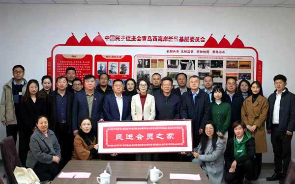 11月25日,为庆祝中国民主促进会成立80周年,进一步加强民进青岛西海岸基层组织建设,增强会员归属感与凝聚力,民进青岛市西海岸新区基层委员会举行“会员之家”揭牌仪式。民进青岛市委会专职副主委李黎,秘书长刘爱军,中共青岛西海岸新区工委统战部副部长孙传君及会员代表参加活动。