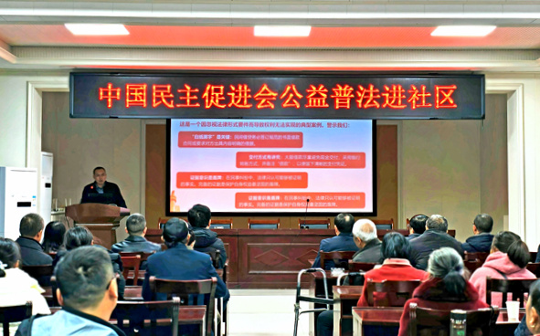 11月27日,民进随州市曾都支部与法律综合支部联合在朱家湾社区举办公益普法进社区活动。曾都支部副主委、随州市律师协会副会长孙雷骁,为社区居民带来一堂生动的法治宣传课。朱家湾社区50多位居民参加活动。