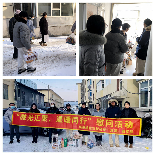 12月12日,民进通化市新会员一支部、四支部联合开展“微光汇聚,温暖同行”慰问活动,为困难家庭送去了生活物资。部分支部会员参加。
