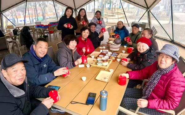 午后,“围炉话会史”环节在丰收营地温馨展开。会员们围炉煮茶,共话支部十年历程,回顾发展足迹、分享成长故事。三位年逾八旬的老会员深情讲述亲身经历,青年会员积极表达履职担当的意愿。茶香袅袅中,大家情感交融、增进情谊,进一步凝聚薪火相传、接续奋斗的合力。