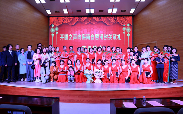 为庆祝海南自贸港全岛正式封关,12月18日,民进海南省直属第一基层委员会、民进海南省委会妇女委员会、海南民进开明之声合唱团在海南省图书馆报告厅联合举行“开明之声向海南自贸港封关献礼”庆祝晚会。晚会由基层委员会副主委司爱武主持。