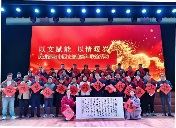 1月10日,民进邵阳学院支部、湘中幼专总支、文艺支部、文化支部携手联动,在邵阳市第五中学举办“以文赋能 以情暖岁”新年联谊活动。民进邵阳市委会副主委杨喜国、黄一萍出席活动。