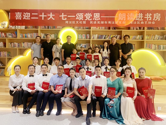 为迎接中共二十大胜利召开、庆祝中国共产党成立101周年,6月30日晚,“喜迎二十大 七一颂党恩”朗读活动在坐落于湾沚区的芜湖城市书房·49号书房隆重举办。