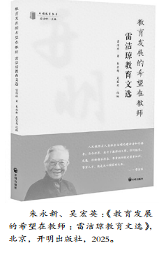 《教育发展的希望在教师:雷洁琼教育文选》的出版,具有极其重要的现实意义。它汇聚了雷洁琼一生在教育领域的思考、实践和探索,是其教育智慧的结晶。通过阅读这本文选,我们可以追溯百年来特别是改革开放以来中国教育发展的宏大史诗,聆听一代教育家在时代浪潮中为教育、为教师、为儿童发出的庄严呼吁。