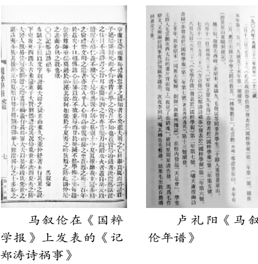 在教学之余,马叙伦以史为剑,积极挖掘被掩埋的忠烈、记录被遗忘的惨案、寄情险峻山河,将江山的草木风烟化作民族觉醒的呐喊。期间,他在《国粹学报》发表了6篇文章,并撰写了2篇在江山的游记,分别收录于《天马山房丛著》和民国26 年王国治编纂的《景星山志》稿本中。其中,发表于1906 年《国粹学报》(卷二第六号史篇)的《记郑涛诗祸事》一文尤为特殊。郑涛乃乾隆年间人士,其诗集《青龙集》中的诗作充满了对清廷统治的不满,一句“夺朱非正色,异种亦称王”道出对清朝统治的抗争,“清风不识字,翻吾案头书” 更是将矛头直指清廷。然而,这些饱含民族情感的诗句,因仇家的告发,为他招来灭顶之灾。马叙伦将这一历史事件整理形成了《记郑涛诗祸事》,文中不仅详细还原了这一历史悲剧,更痛斥清兵入关以来屡兴文字冤狱的残暴行径。