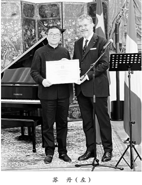 2023年6月2日,在意大利国庆日这一天,新任驻华大使安博思代表意大利政府授予民进中央委员、中国工艺美术馆副馆长、中国非物质文化遗产馆副馆长苏丹,意大利之星骑士勋章。