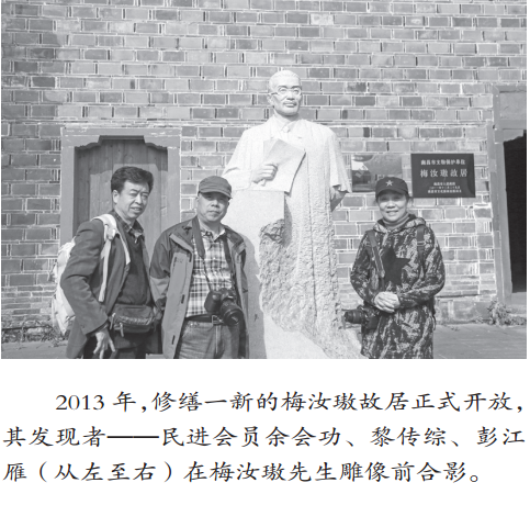 这座故居的发现,与民进会员有一段深厚的渊源。2008年的一天,民进江西摄影协会会员宫正、肖戈、余会功、熊大成、任春才、彭江雁、黎传综七人前往梅湖拍摄照片。他们分成三组,穿梭于湖光树影之间。