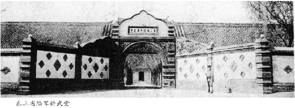 东北讲武堂的前身是清末在奉天(今沈阳)创办的东三省讲武堂。1919年3月,张作霖任东三省巡阅使后,为了整饬军队,在原东三省讲武堂基础上重新开办东三省陆军讲武堂。这是奉军(后称东北军)自办的培养陆军军官的学校。1926年7月改称“东北陆军讲武堂”。1928年张学良统领东北军后,逐渐形成了比较完善的军事教育体系,改称“东北讲武堂”,成为当时东北军事教育的最高学府。
