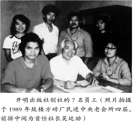 开明出版社是1988年12月,由民进中央副主席张志公、叶至善先生(时任中国版协副主席。以下称叶至老、叶老)亲自主持筹建的。成立初期,在叶老的主持下,组成了由他、首任社长吴廷劢以及江秉祥组成的三人社务委员会,由叶老担任社务委员会主任,由此也为开明出版社奠定了以社务委员会领导下的社长负责制为组织架构的领导机制(百度百科“叶至善”项下表述为:1988年底筹建开明出版社并任社务委员会主任)。
