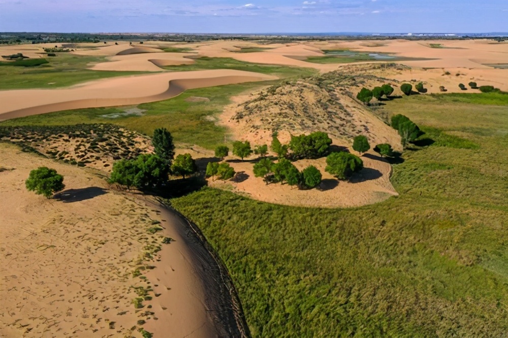 这是2020年9月8日在内蒙古鄂尔多斯市乌审旗拍摄的治理后的毛乌素沙地(无人机照片)。新华社记者连振摄