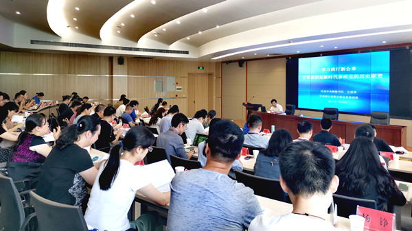 7月18日下午,民进中央“开明讲堂”宣讲活动在浙江湖州举行。本次宣讲活动是结合2019年浙江民进省直新会员培训班进行的专题学习。