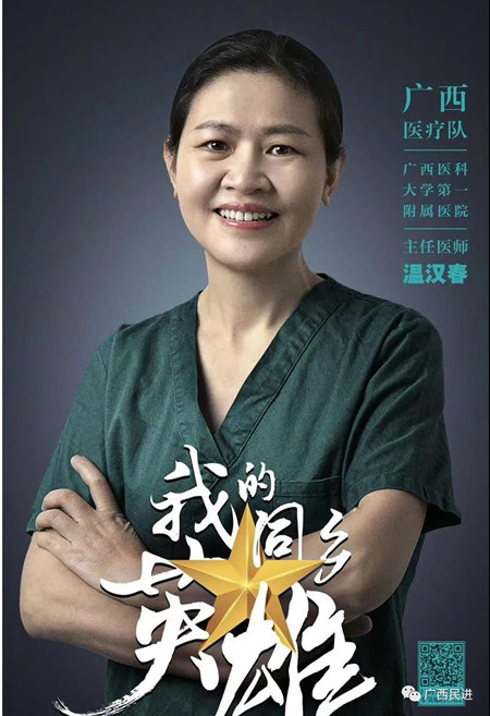3月18日,广西援鄂医疗队首批153名抗疫英雄凯旋归来,民进会员、广西医科大学第一附属医院重症医学科一区副主任温汉春也在其中。此前,她被授予“全国卫生健康系统新冠肺炎疫情防控工作先进个人”荣誉称号。